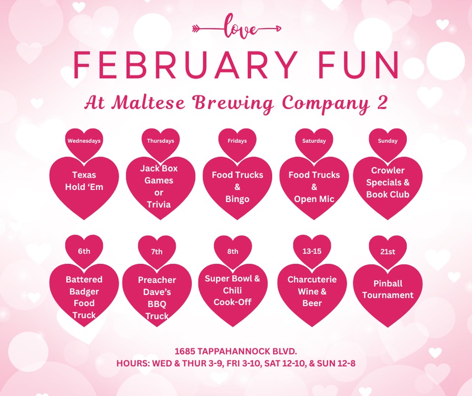 The Maltese Brewing Company 2 in Tappahannock wishes to partner with local Food Trucks on Fridays and Saturdays in 2026. If interested, please email Sheila Smith at Maltesebrewing.tapp@gmail.com.
